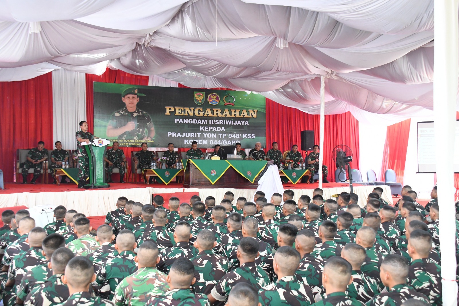 Dalam arahannya, Pangdam II/Swj Mayjen TNI Ujang Darwis menyampaikan rasa bangga dan apresiasinya terhadap para prajurit.