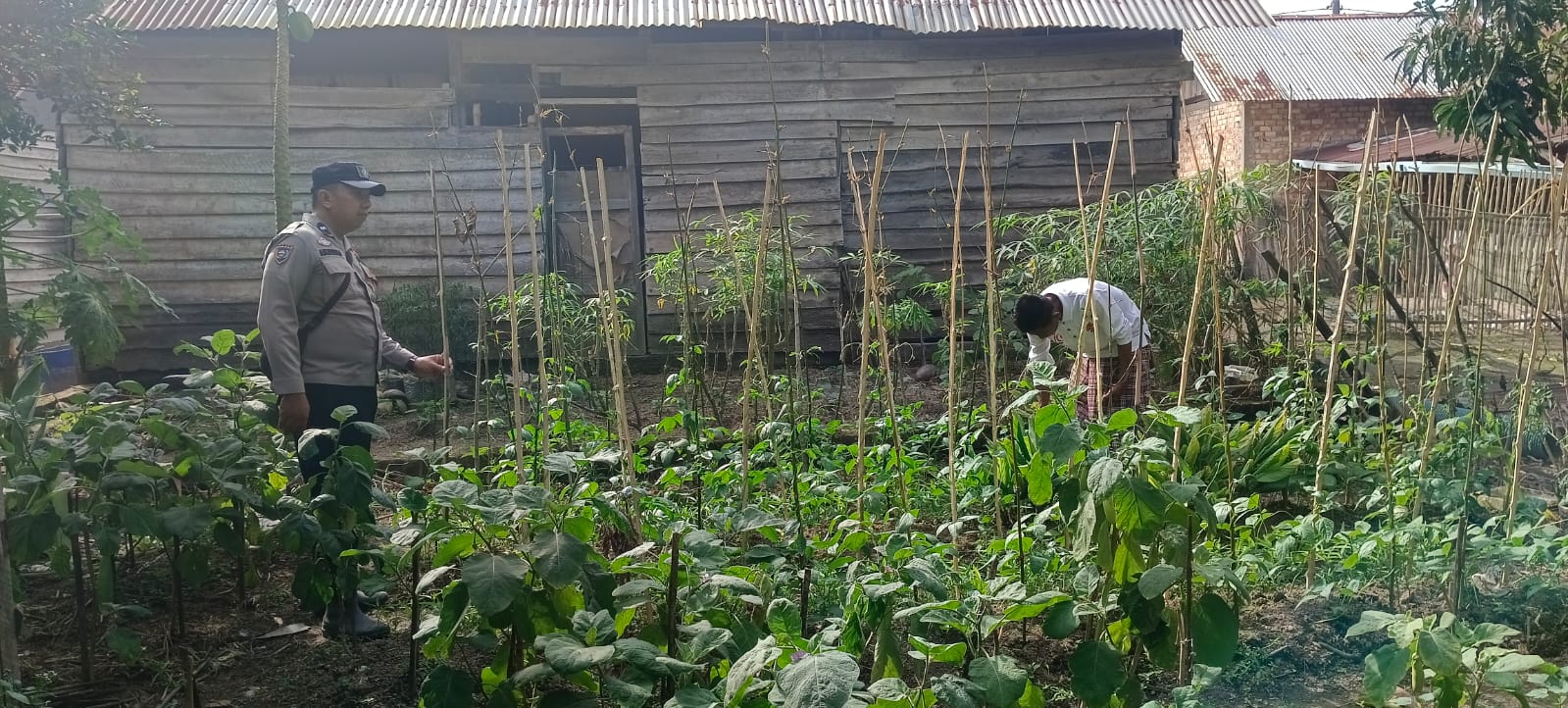 Giat yang dilaksanakan pada Senin (19/5/2025) sekitar pukul 09.00 WIB tersebut, berlangsung di pekarangan milik Bapak Surono di Desa Tirta Mulya, Kecamatan Muara Sugihan, Kabupaten Banyuasin. Pada kesempatan ini, Aipda Anjodhi melakukan perawatan pada lahan seluas 50 meter persegi yang ditanami Terong Hijau.