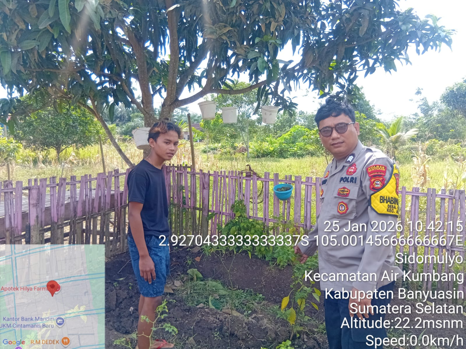 Bhabinkamtibmas Desa Cinta Manis Baru, Brigpol Yuda Bagus Purnama, turun langsung ke tengah masyarakat untuk memberikan himbauan serta menggerakkan warga agar aktif melaksanakan Program Pekarangan Pangan Bergizi (P2B) sebagai langkah konkret memperkuat ketahanan pangan di tingkat keluarga dan lingkungan.