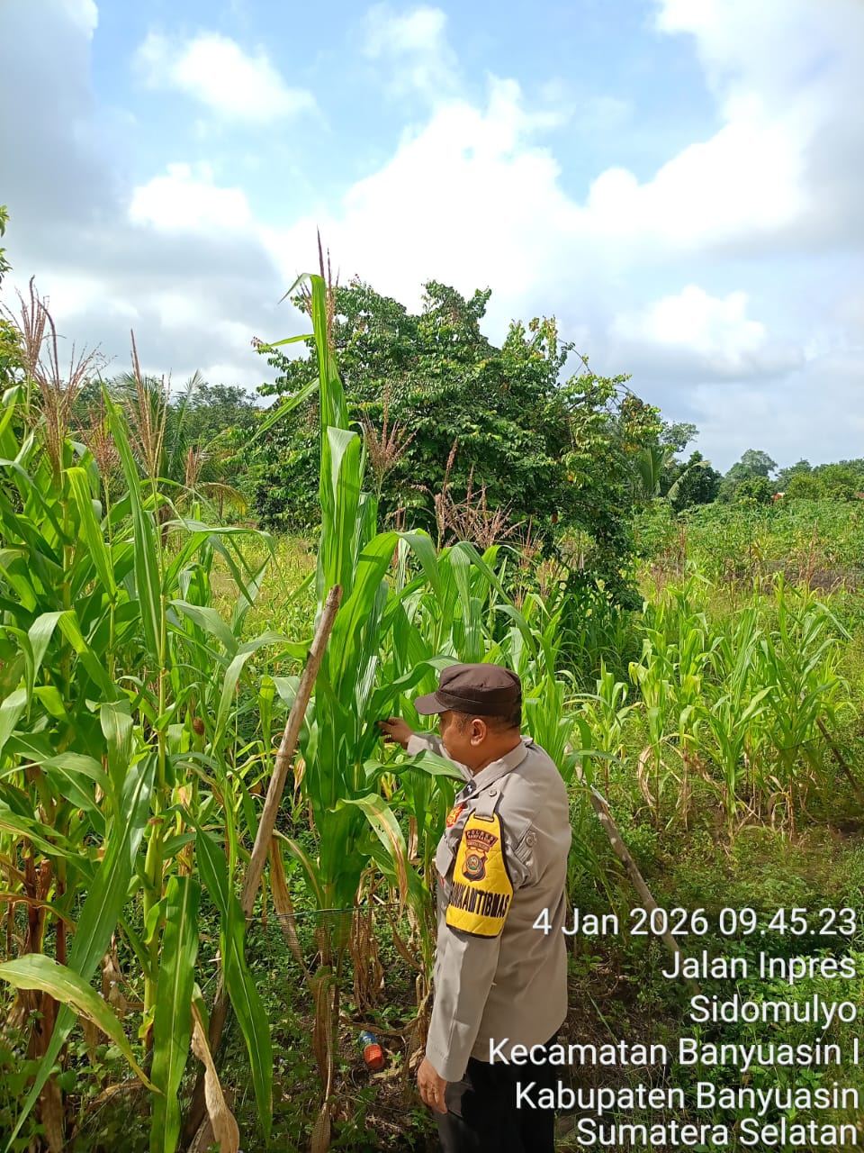 Banyuasin – Bhabinkamtibmas Polsek Air Kumbang aktif turun ke masyarakat untuk mendorong program ketahanan pangan nasional. Pada Minggu (4/1/2026) siang, Aipda Apri Haryono, Bhabinkamtibmas Desa Sidomulyo, melaksanakan kegiatan pembinaan dan himbauan kepada warga.
