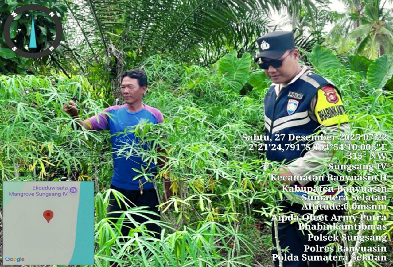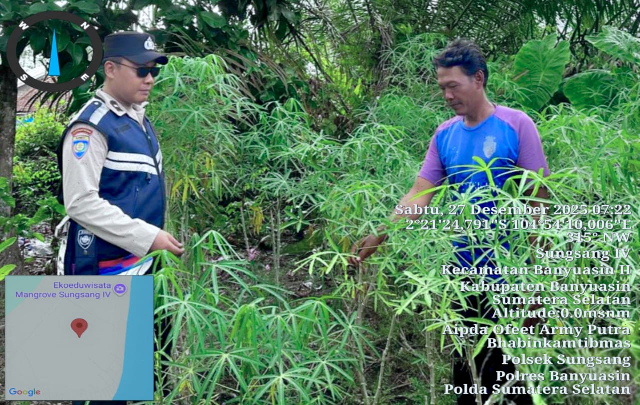 Banyuasin – Bhabinkamtibmas Polsek Sungsang menunjukkan peran aktifnya dalam mendukung program pemerintah dengan menggerakkan masyarakat di wilayah binaannya. Pada Sabtu (27/12/2025) siang, Aipda Ofeet Army Putra melaksanakan kegiatan di Desa Sungsang IV, Kecamatan Banyuasin II.