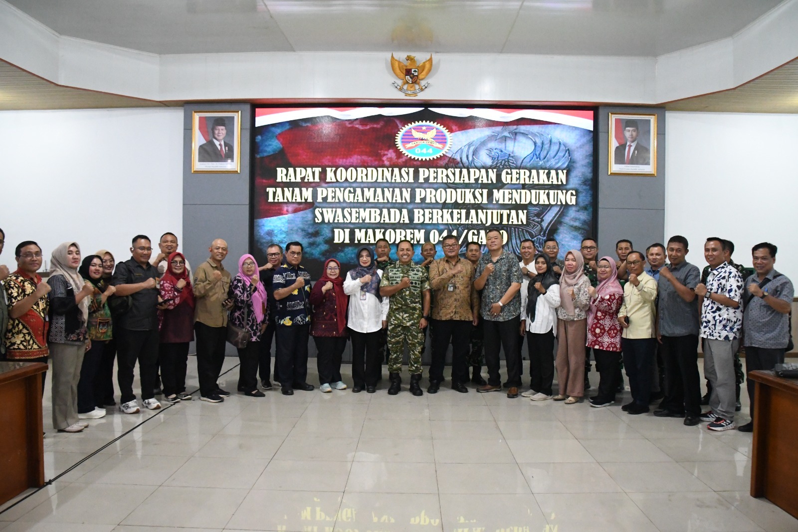 Palembang – Dalam rangka mendukung tercapainya swasembada pangan yang berkelanjutan, Korem 044/Gapo bersama Dinas Pertanian Tanaman Pangan dan Hortikultura Prov. Sumsel menggelar Rapat Koordinasi Persiapan Gerakan Tanam Pengamanan Produksi yang melibatkan berbagai unsur terkait, baik pemerintah daerah, TNI, maupun stakeholder pertanian lainnya.
