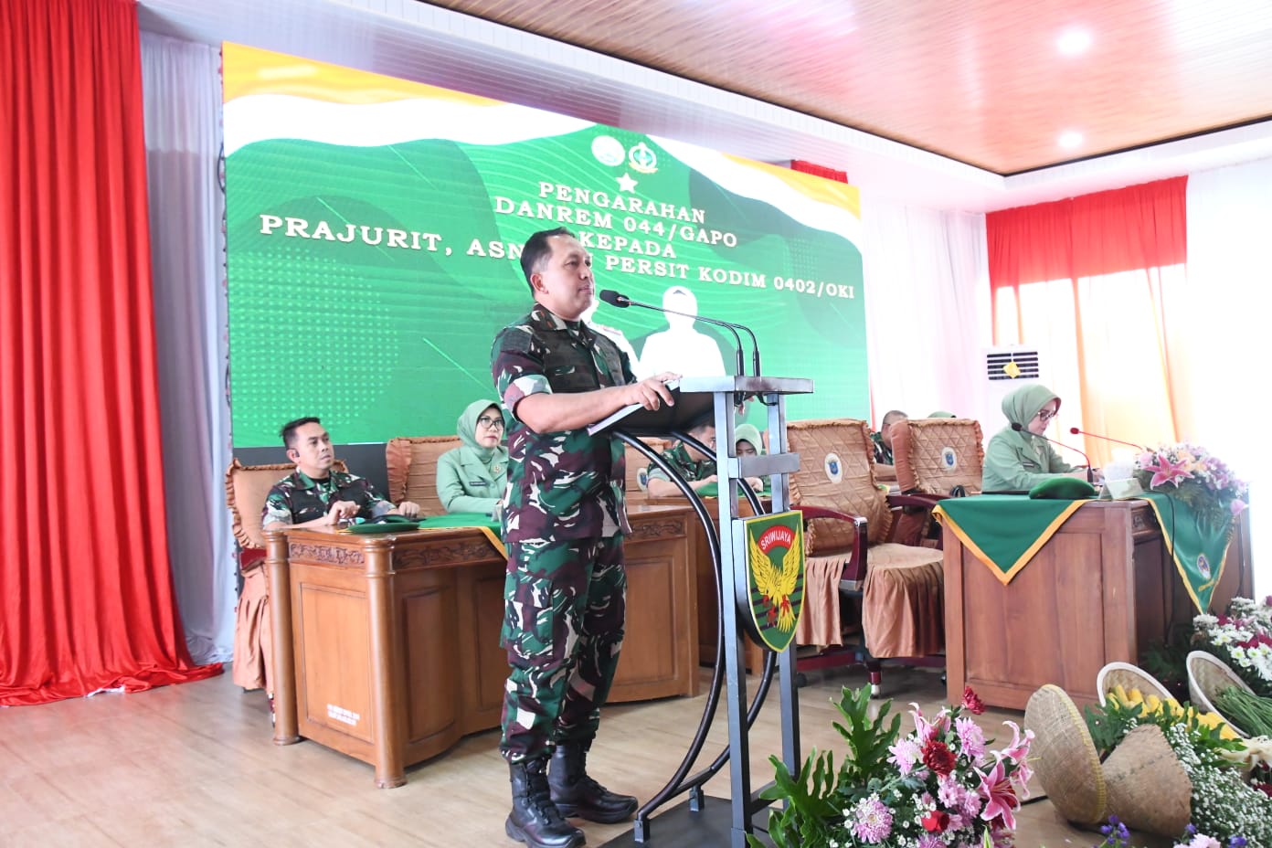 Dalam kesempatan tersebut, Danrem 044/Gapo memberikan pengarahan kepada seluruh prajurit dan Persit. Dalam arahannya, beliau menekankan pentingnya menjaga disiplin, loyalitas, dan profesionalisme dalam menjalankan tugas sebagai prajurit TNI AD, serta selalu menjaga nama baik institusi di tengah masyarakat.