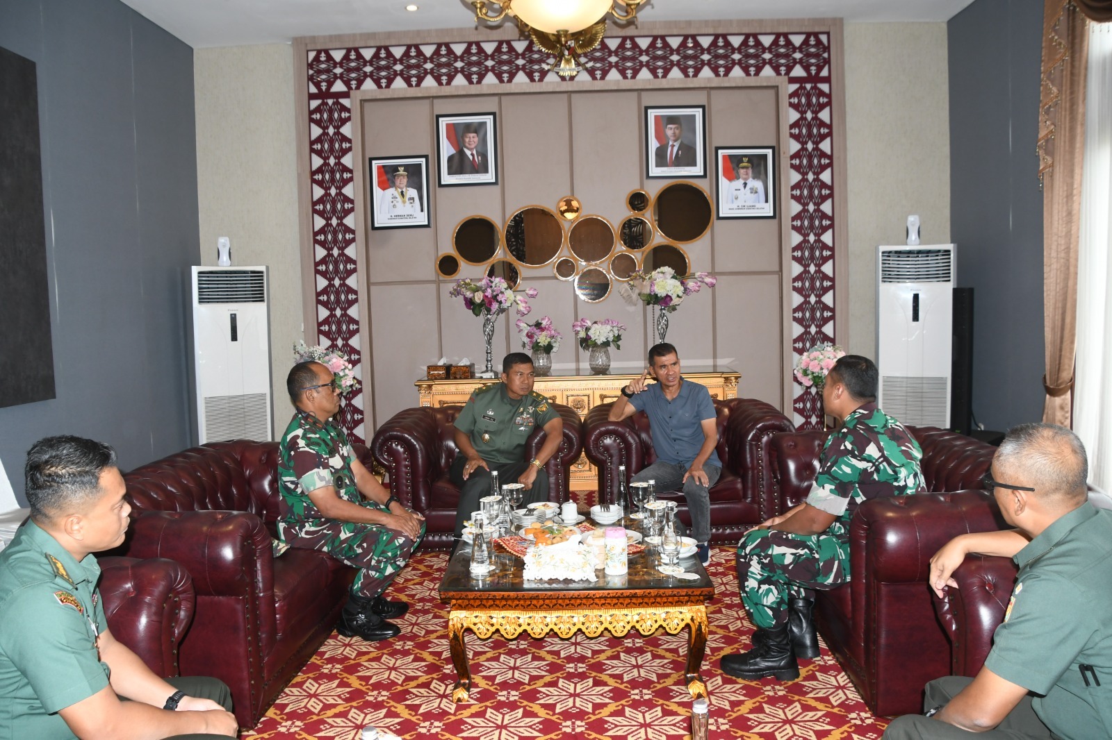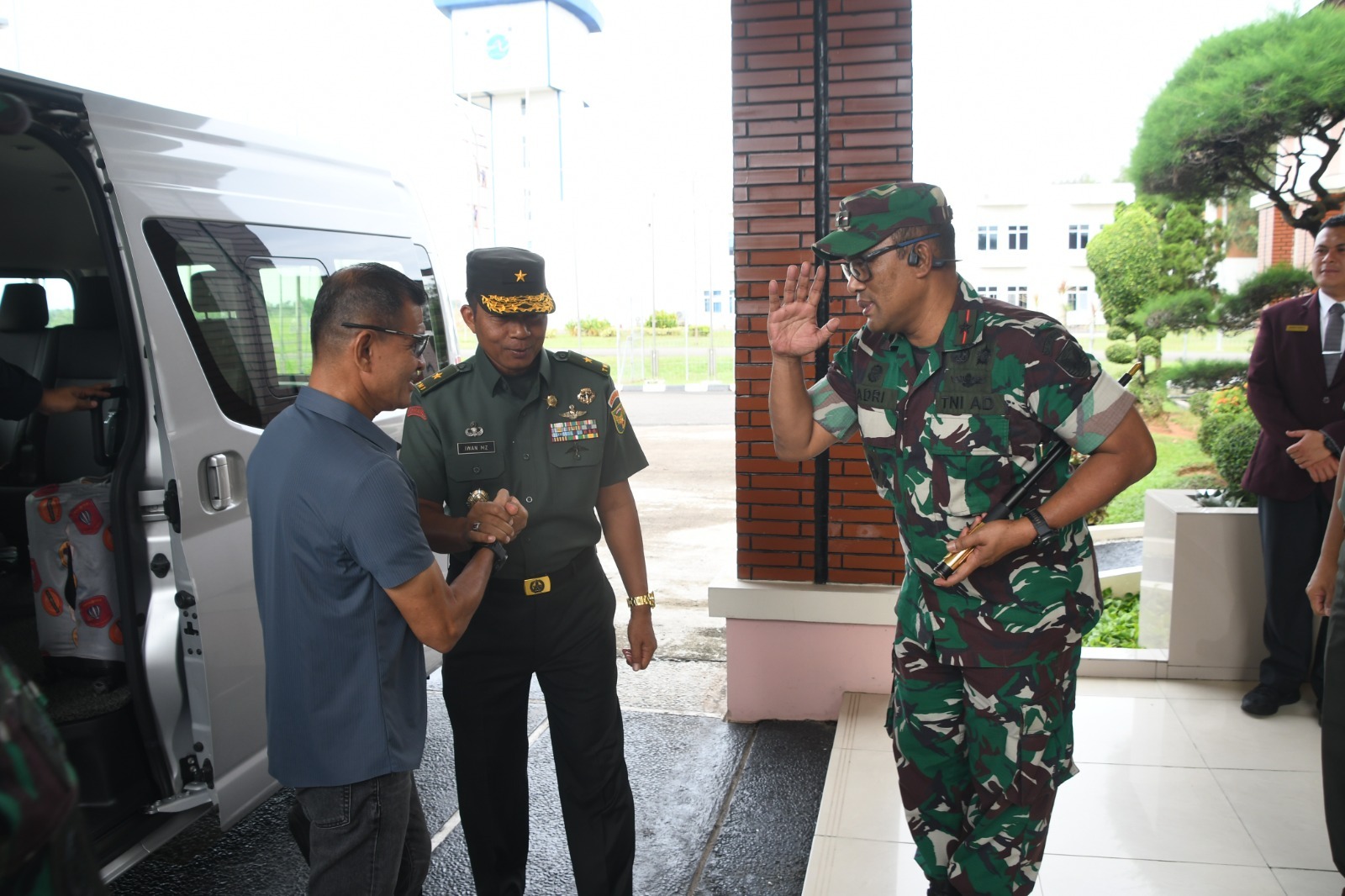 Palembang – Suasana hangat terlihat pada saat Danrem 044/Gapo Brigjen TNI Adri Koesdyanto menyambut kedatangan Koorsahli Kasad Letjen TNI Muhammad Zamroni yang tiba VIP Room Bandara Internasional SMB II Palembang pagi ini dalam rangka Wasev TMMD ke-126 Kodim 0401/Muba, Rabu (22/10/2025).