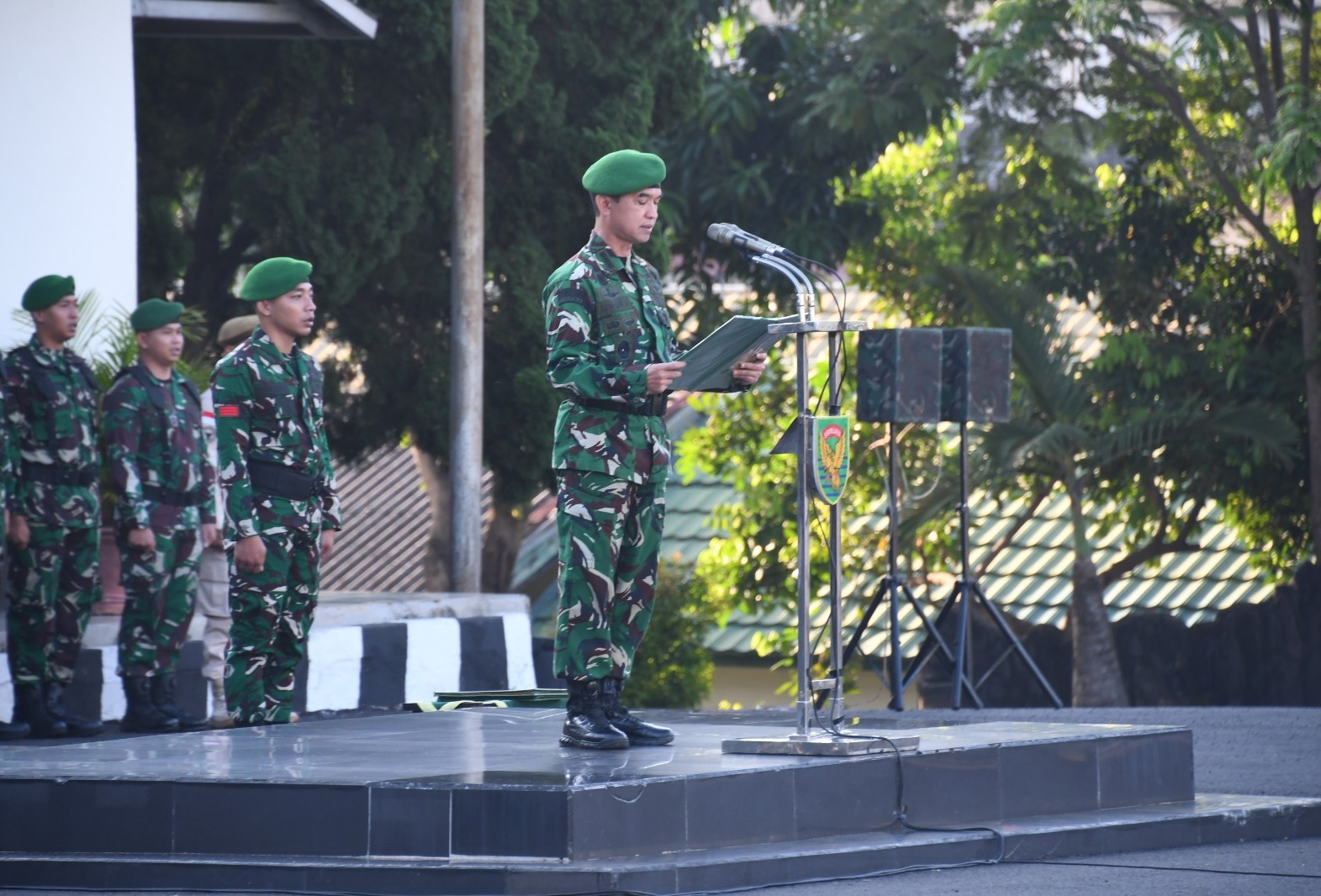 Upacara berlangsung tertib dan penuh semangat, mencerminkan komitmen Korem 044/Gapo dalam menjaga profesionalisme dan integritas sebagai bagian dari TNI.