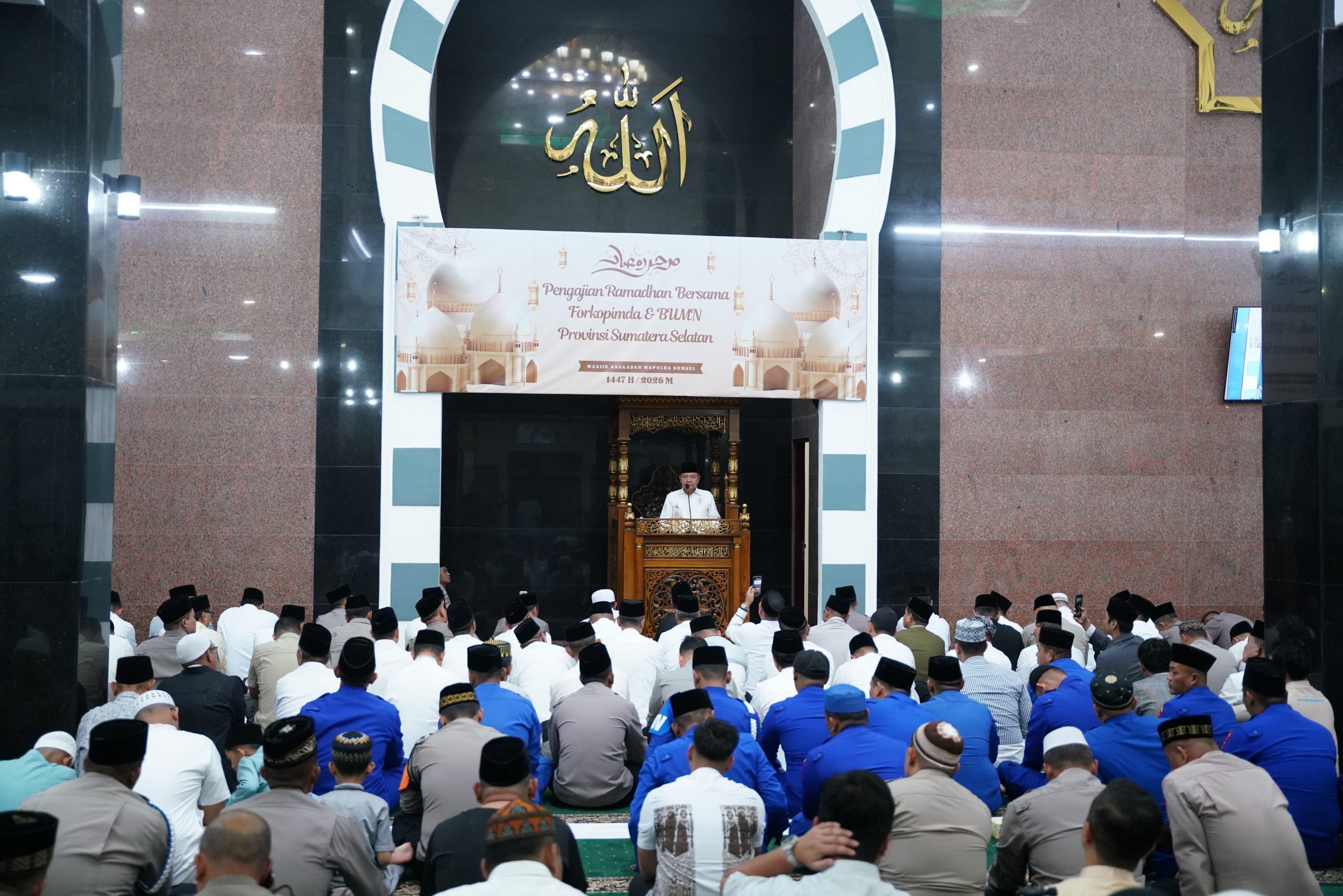 Kegiatan tersebut merupakan bagian dari Safari Ramadhan Pemerintah Provinsi Sumatera Selatan Tahun 1447 H/2026 M. Gubernur Sumatera Selatan H. Herman Deru hadir bersama unsur Forkopimda, pejabat utama Polda Sumsel, kepala OPD, serta perwakilan BUMN dan BUMD.