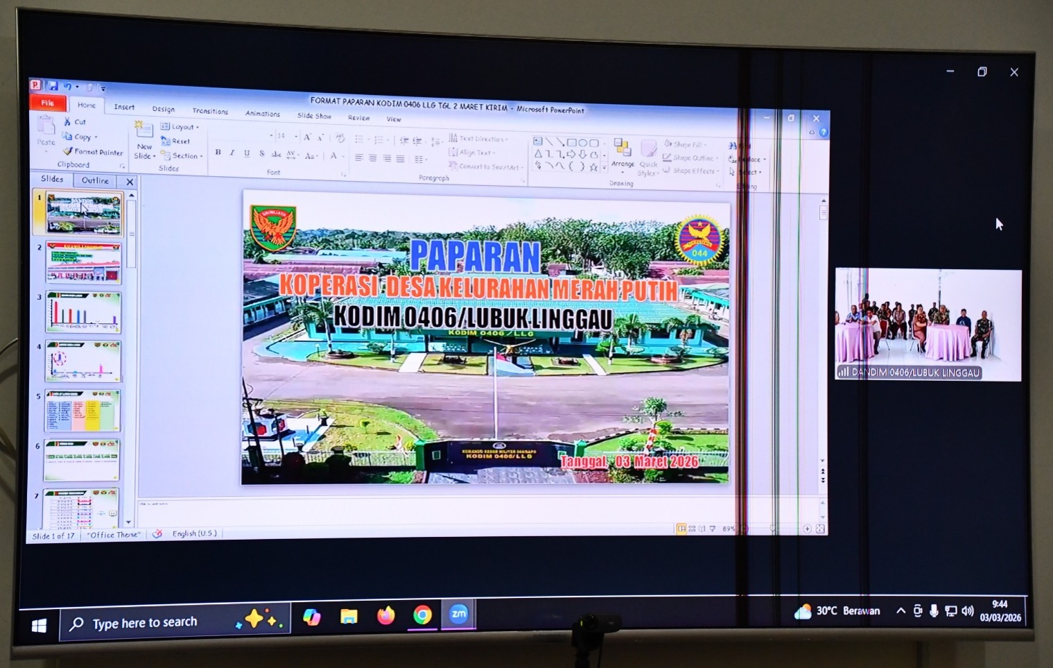 Palembang – Komandan Korem 044/Garuda Dempo Brigjen TNI Khabib Mahfud, S.I.P., M.M mengikuti Rapat Lanjutan Evaluasi Percepatan Pembangunan KDKMP secara virtual conference, bertempat di Ruang Puskodalops Korem 044/Gapo Jl. Jenderal Sudirman Km. 4 Kota Palembang, Selasa (3/3/2026).