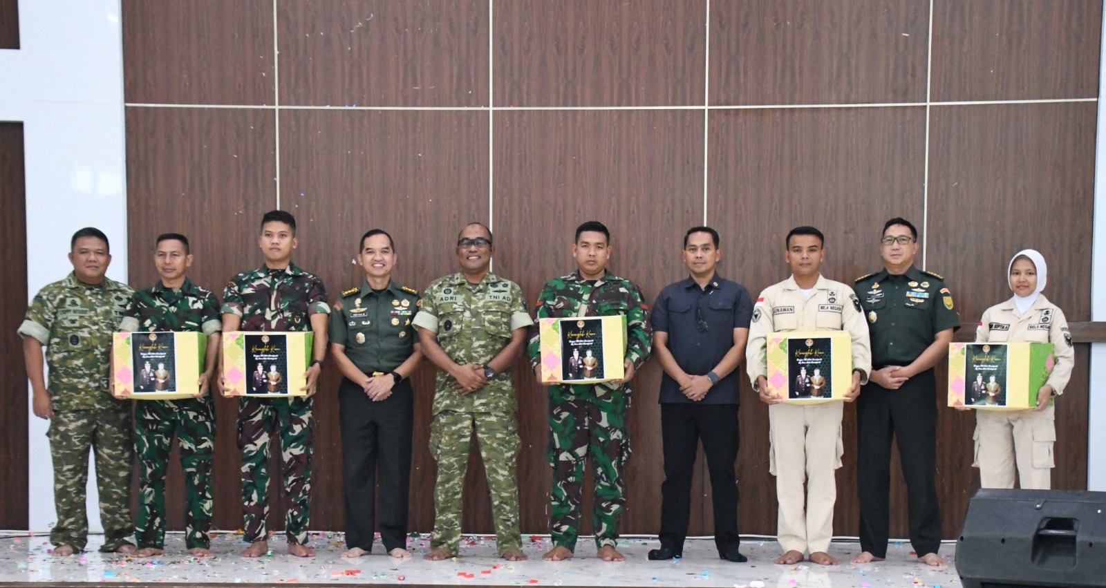 Di sela-sela acara munggahan, suasana semakin hangat ketika para anggota Makorem memberikan kejutan kepada Brigjen TNI Adri Koesdyanto beserta Ibu yang tengah berulang tahun. Ucapan selamat dan doa terbaik pun mengalir sebagai bentuk penghormatan dan kebersamaan keluarga besar Korem 044/Gapo.