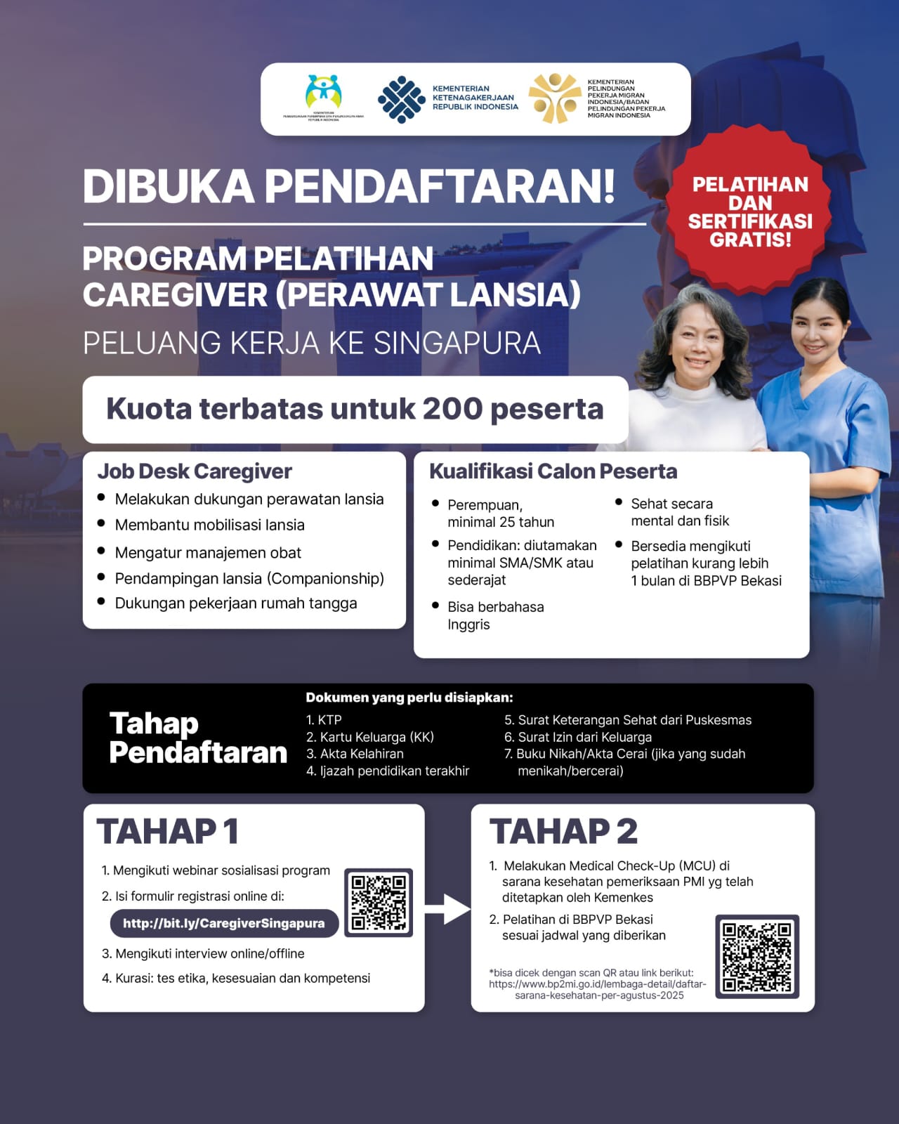 Program ini merupakan hasil kolaborasi dengan Kementerian Ketenagakerjaan RI, Kementerian PPPA dan BP2MI, bertujuan untuk meningkatkan keterampilan tenaga kerja lokal dan membuka akses ke pasar kerja internasional. Dengan kuota terbatas hanya untuk 200 peserta, ini adalah kesempatan langka yang tidak boleh dilewatkan!