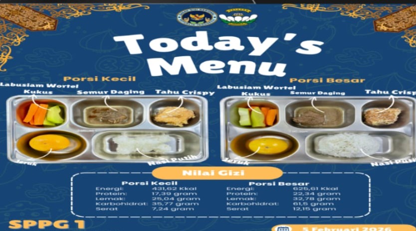 Menu yang diuji terdiri dari Nasi Putih, Semur Daging, Tahu Krispi, Labusiam Wortel Kukus, dan Buah Jeruk. Menu ini akan dibagikan dalam dua varian porsi, yaitu porsi besar dan porsi kecil, dengan komposisi gizi yang telah dihitung secara detail oleh Ahli Gizi, Resta Dwi Permata, Amd.Gz.