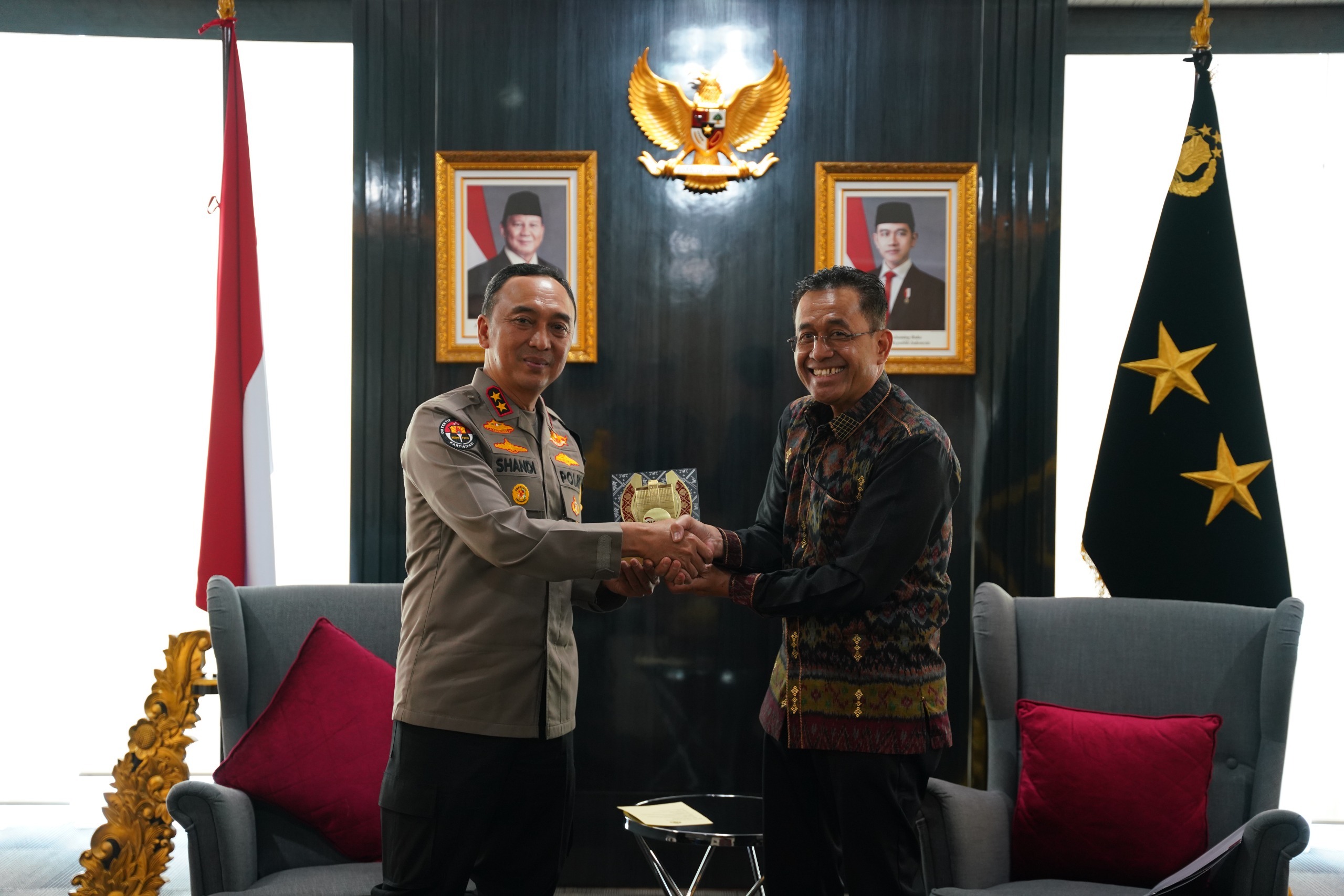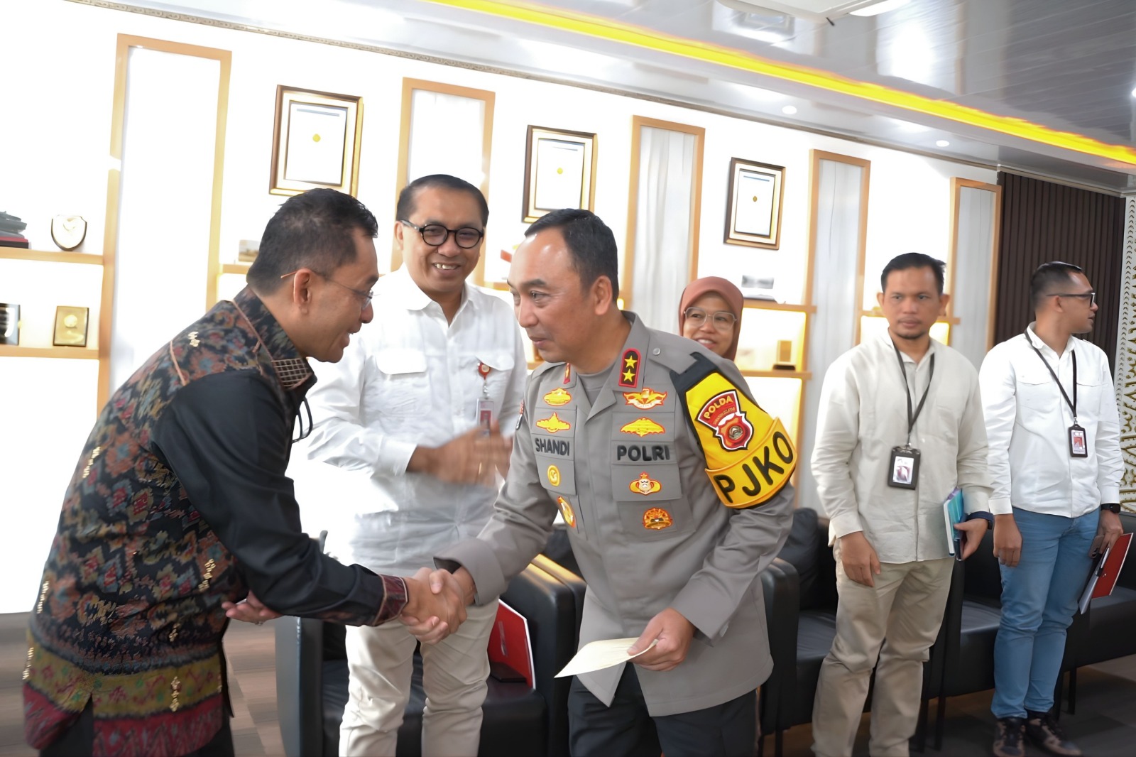 Kapolda Sumsel Irjen Pol Dr. Sandi Nugroho, S.I.K., S.H., M.Hum. menerima langsung audiensi Kepala OJK Provinsi Sumatera Selatan Arifin Susanto beserta jajaran di Mapolda Sumsel, Palembang.