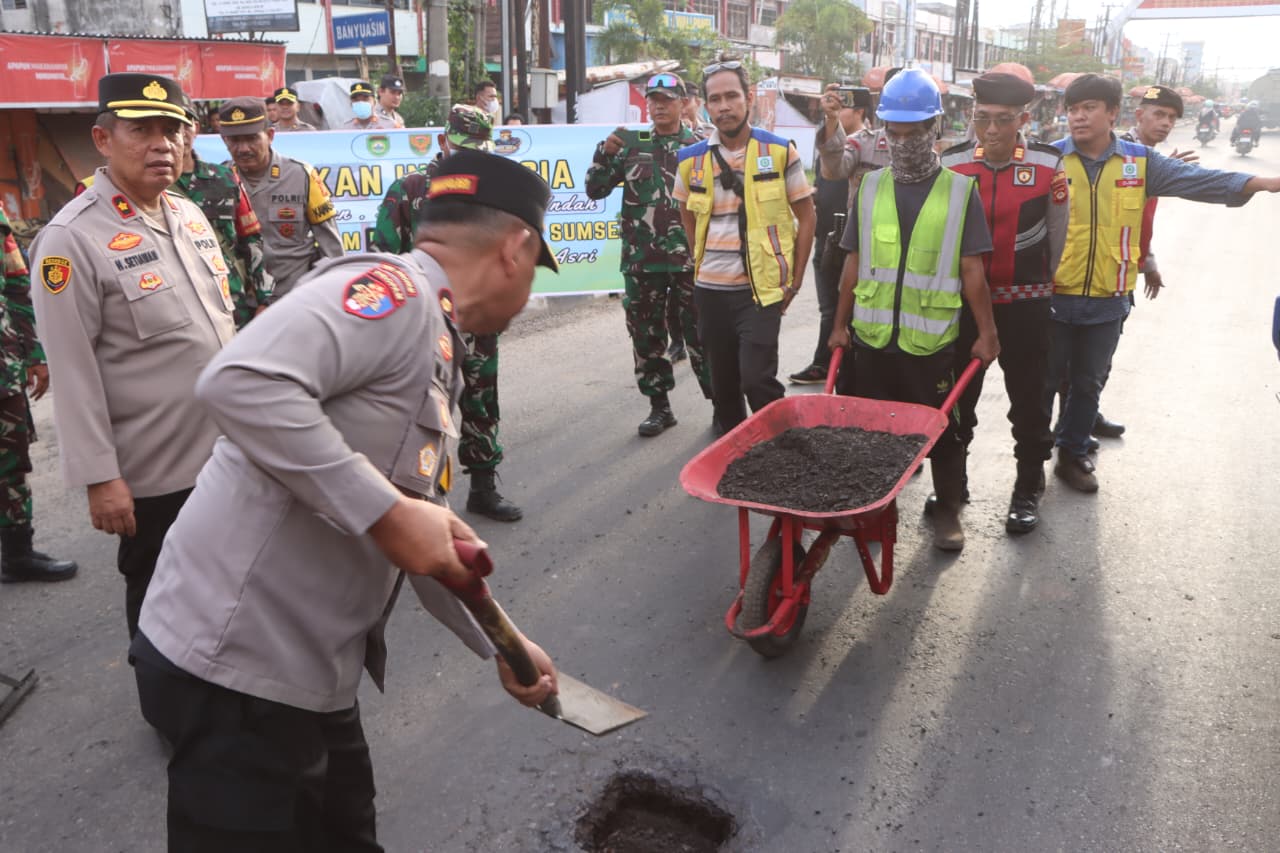 Dimulai tepat pukul 16.00 WIB, aparat kepolisian turun langsung ke Jalan Lintas Palembang-Jambi, tepatnya di Kecamatan Talang Kelapa, Kabupaten Banyuasin. Titik tersebut dipilih lantaran kondisi jalan yang berlubang kerap dikeluhkan pengguna jalan dan berpotensi membahayakan keselamatan berlalu lintas.