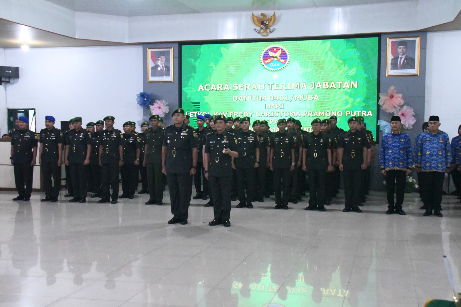 Kepada pejabat baru, Letkol Inf Dimas Kurniawan, Danrem mengucapkan selamat atas kepercayaan yang diberikan pimpinan untuk mengemban tugas sebagai Komandan Kodim 0401/Musi Banyuasin.