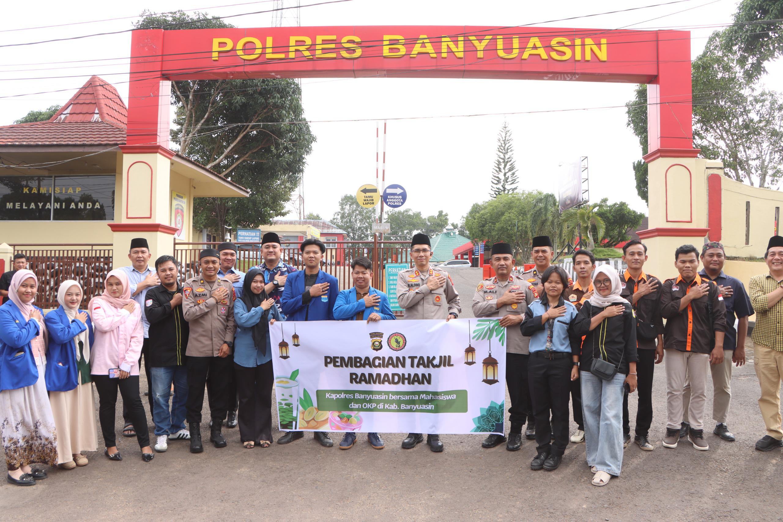 Yang membuat kegiatan ini semakin istimewa adalah sinergi yang terjalin. Terlihat mahasiswa dan perwakilan dari Organisasi Kepemudaan (OKP) Kabupaten Banyuasin turun langsung bahu-membahu dengan aparat kepolisian. Mereka bersama-sama menyiapkan dan membagikan paket takjil kepada pengendara motor, sopir angkutan umum.
