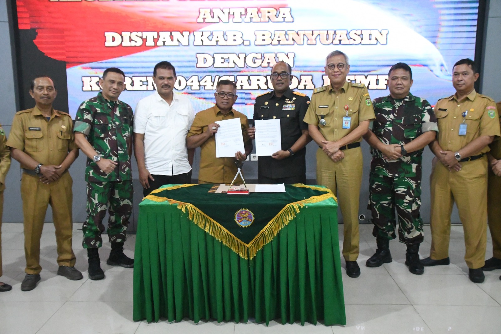 Kontrak cetak sawah antara Kab. Banyuasin dan Korem 044/Gapo seluas 1.227,5 Ha, turut dihadiri oleh Staf Ahli Kementan Bapak Suwandi, pejabat dari Dinas Pertanian, Kasiter Kasrem 044/Gapo serta Dandim 0430/Banyuasin.