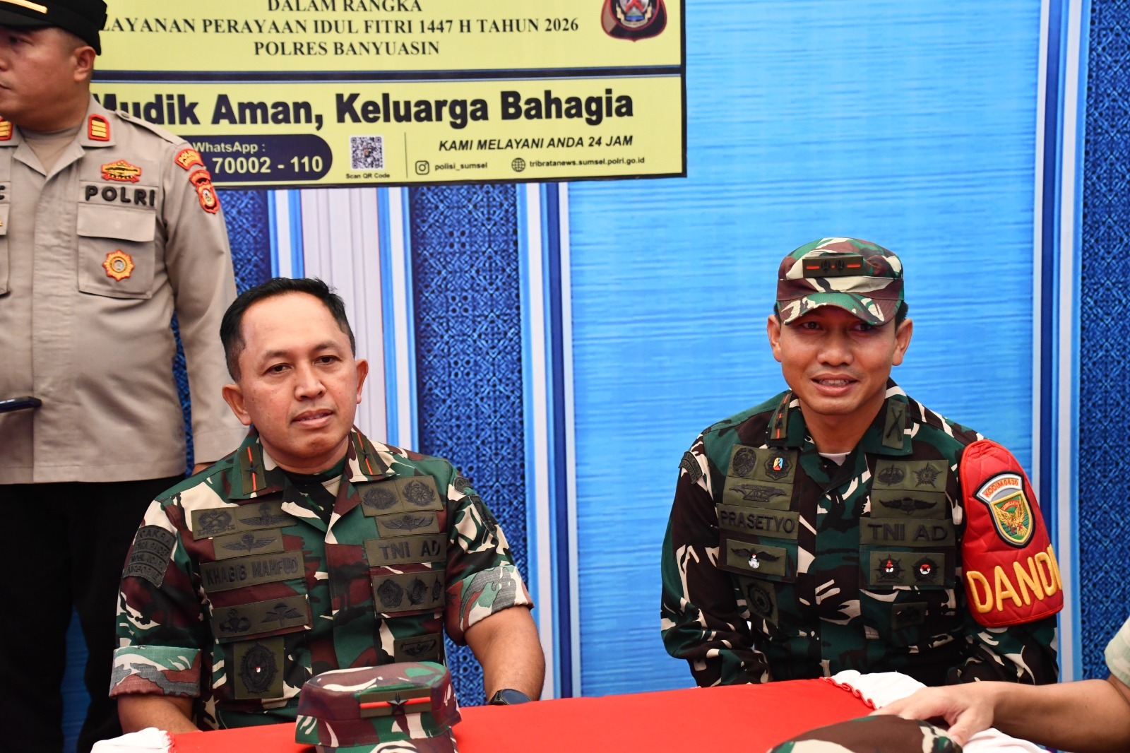 Banyuasin – Komandan Korem 044/Garuda Dempo, Brigjen TNI Khabib Mahfud, melaksanakan peninjauan Pos Pengamanan (PAM) Lebaran di wilayah Kabupaten Banyuasin, dalam rangka memastikan kesiapan pengamanan arus mudik Idulfitri 2026, Kamis (19/3/2026).
